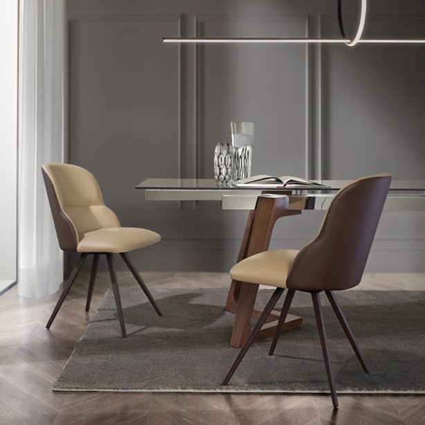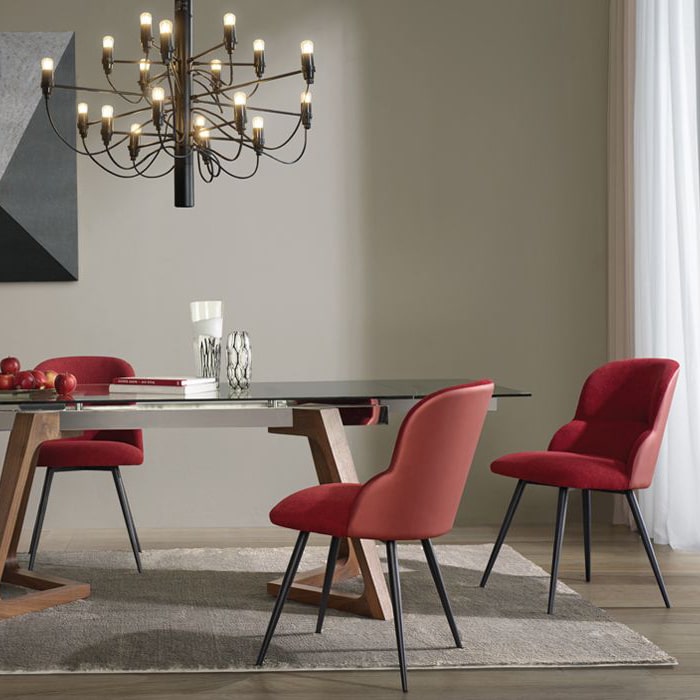 Craquez pour cette chaise au dossier original pour une touche contemporaine dans votre intérieur. Pieds métal ronds ou carrés, pieds bois ou piétement métal pivotant, vous avez le choix avec la chaise de salle à manger CHANTAL !