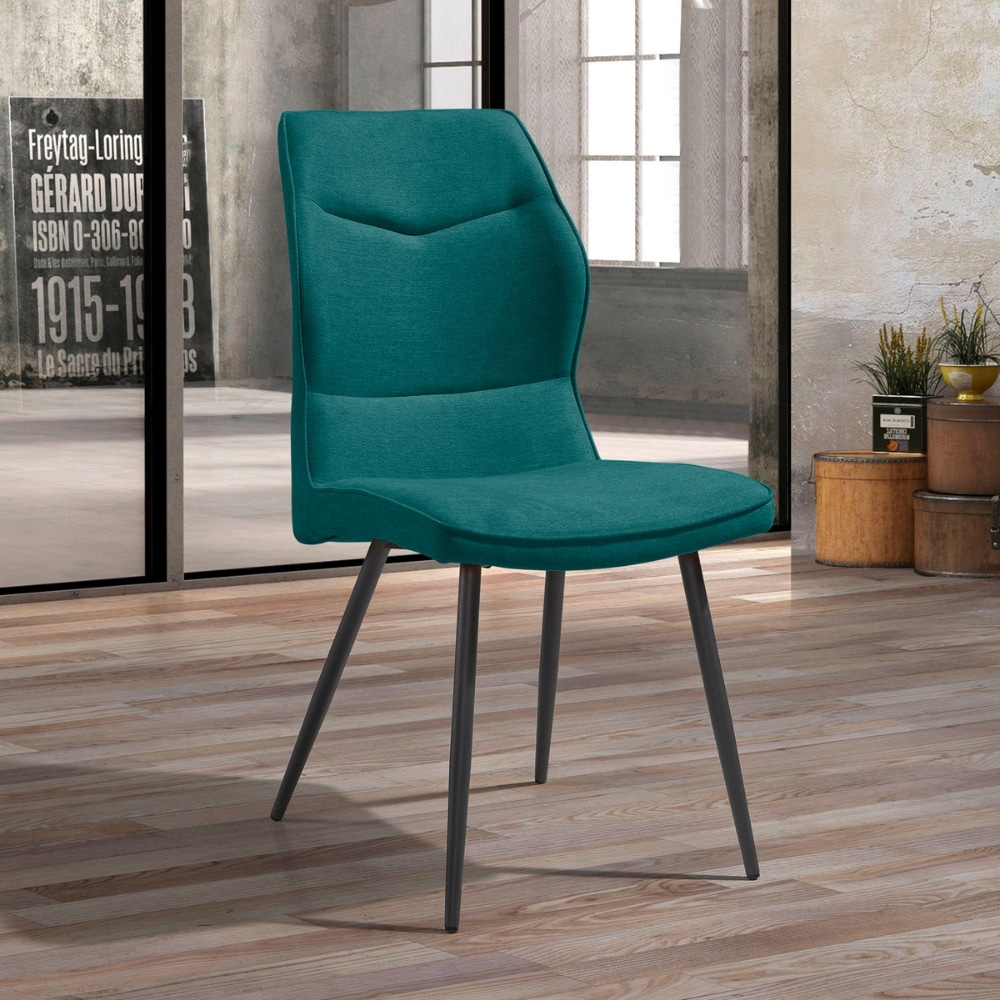La chaise JULIE est un incontournable pour une salle à manger dans l’air du temps. Habillée d’un tissu élégant et portée par un piètement en métal gris anthracite, elle affiche un look moderne et affirmé. Son assise mi-ferme vous accueille avec justesse, pour un parfait équilibre entre maintien et confort. La chaise JULIE, c’est la note design qui transforme votre espace avec élégance.