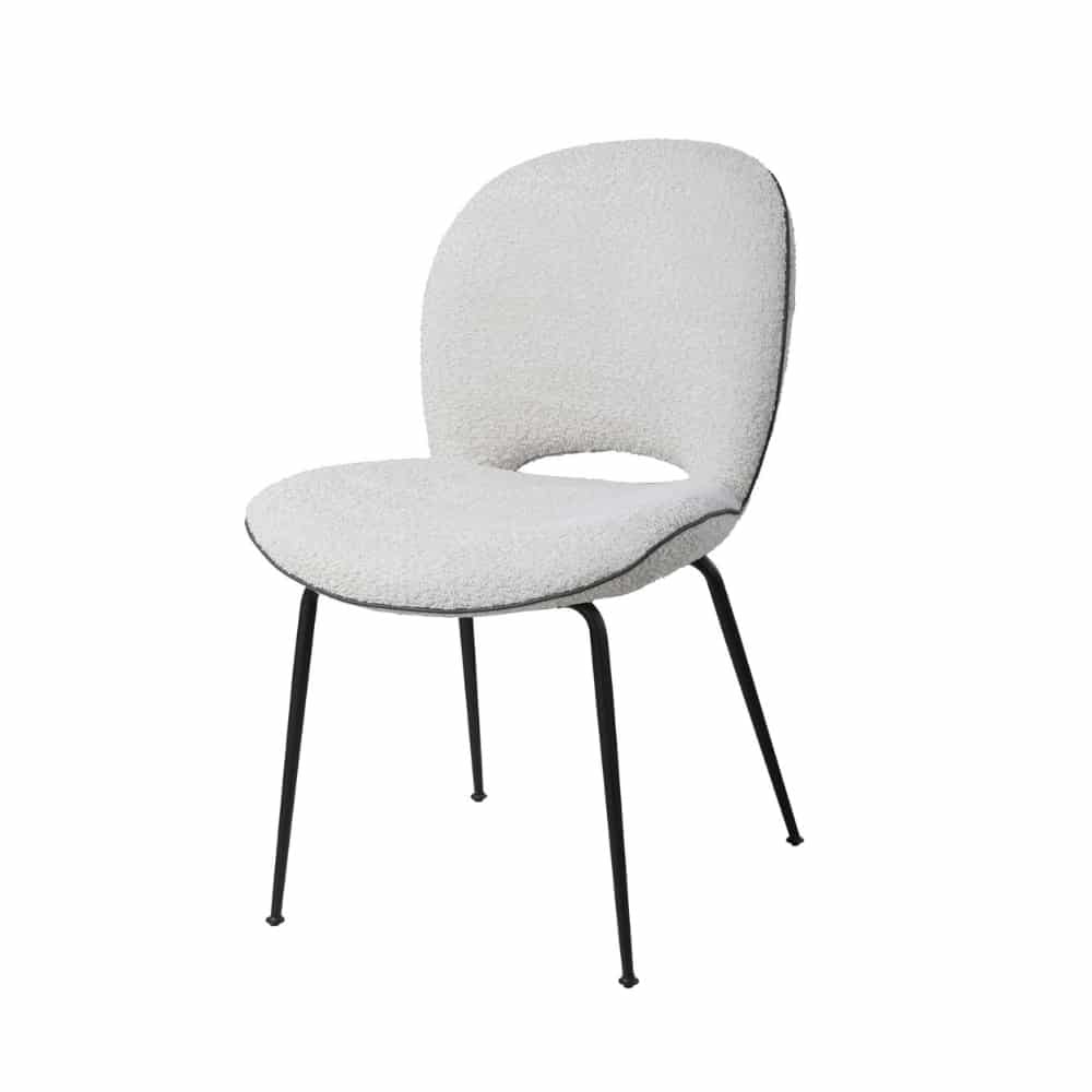 Sa mousse assure un maintien optimal, tandis que son tissu bouclé apporte chaleur et modernité. Le piétement fin en métal noir crée quant à lui un contraste raffiné avec l’assise. Déclinée en 4 coloris tendance, elle crée un décor où l’on a envie de s’attarder, que ce soit dans la salle à manger, un espace de travail ou près d’une bibliothèque. Mixez les teintes, jouez les contrastes, associez-la au bois clair, au cannage ou à un tapis en jute : la chaise RING accompagne vos instants de vie avec style et simplicité.