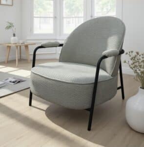 - Coussinage : assise 35 kg/m³ et dossier 18 kg/m³ en mousse polyuréthane indéformable et garnissage fibre acrylique 100% polyester
