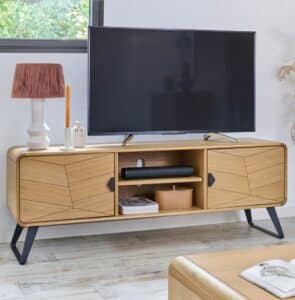 - Structure en hêtre massif, métal et panneaux de particules