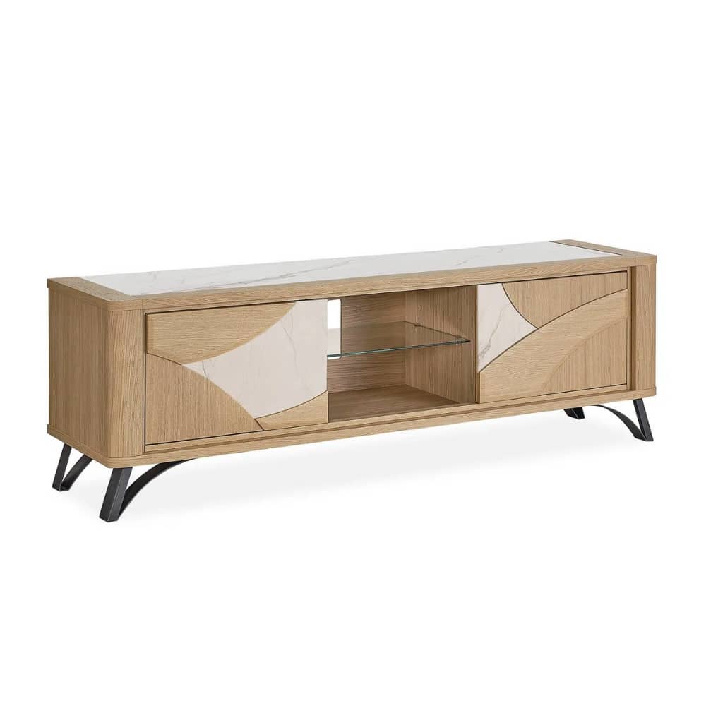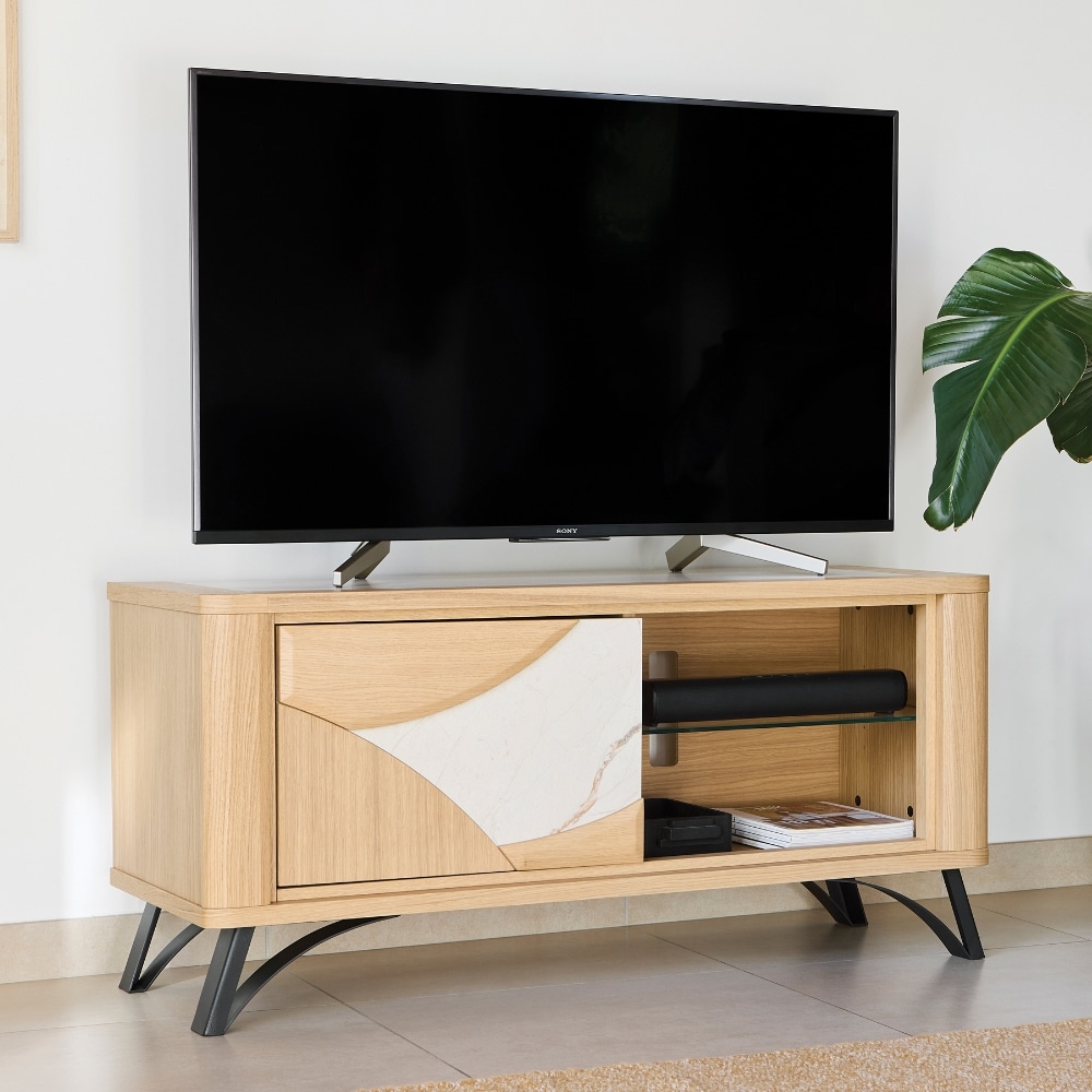 Le meuble TV Hifi RIVIERA incarne ce juste équilibre entre style affirmé et confort au quotidien. Films, musiques, soirées détente… Il sublime chaque moment avec allure. Et pour les petits espaces ? Il existe en version 1 porte, plus compacte mais toujours aussi pratique et stylée !