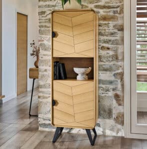 - Portes, côtés, dessus, derrières : panneaux de particules revêtus de placage chêne