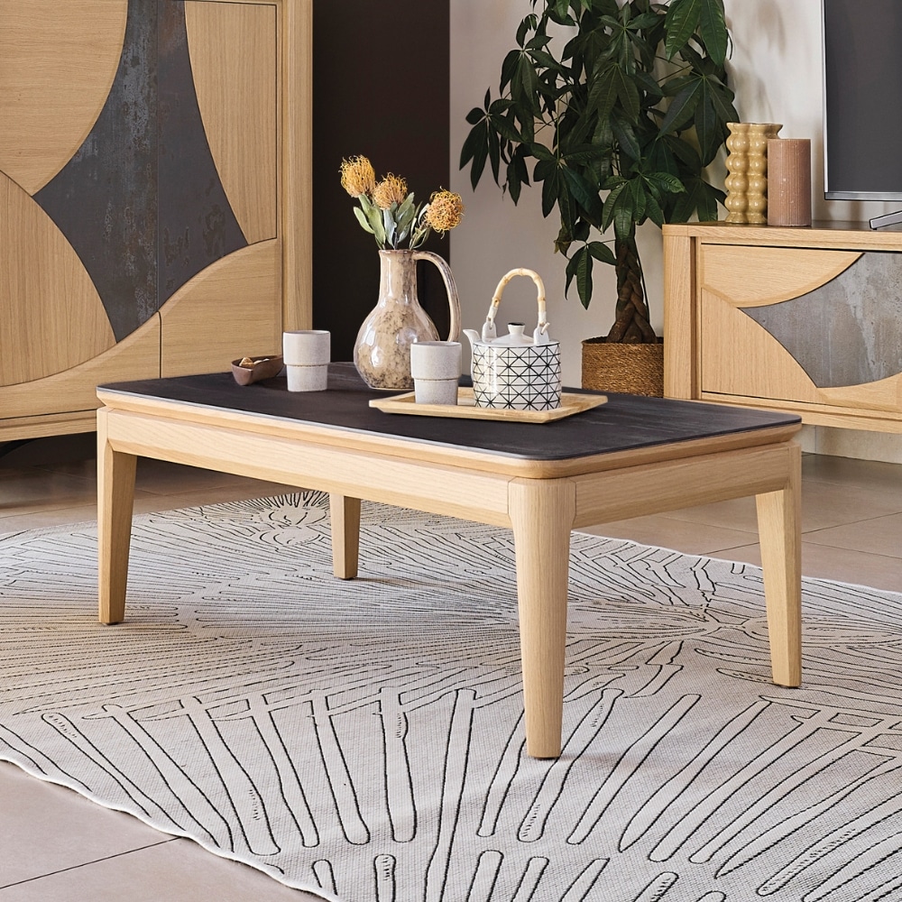 La table basse RIVIERA symbolise cette harmonie entre matériaux raffinés et design moderne. Pratique au quotidien et élégante en toutes circonstances, elle offre une grande surface idéale pour vos moments partagés. Son piètement en tilleul massif plaqué chêne souligne une silhouette contemporaine et accueillante.