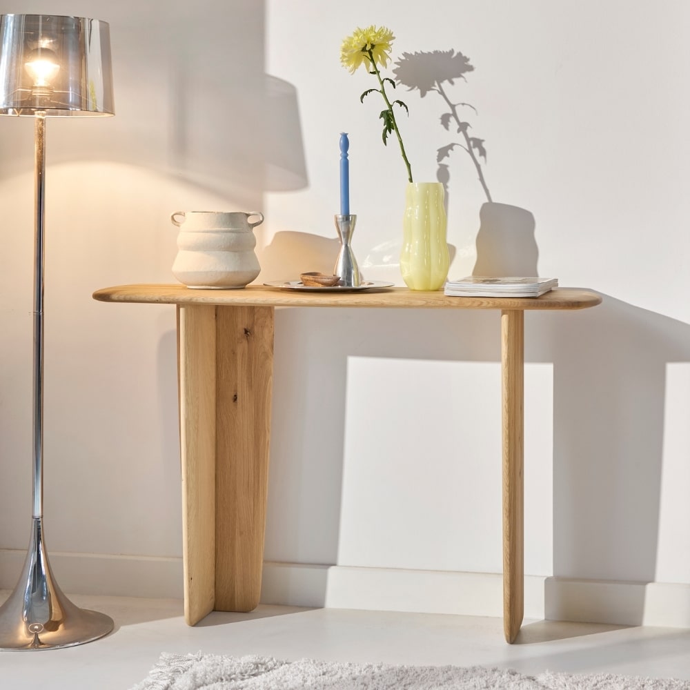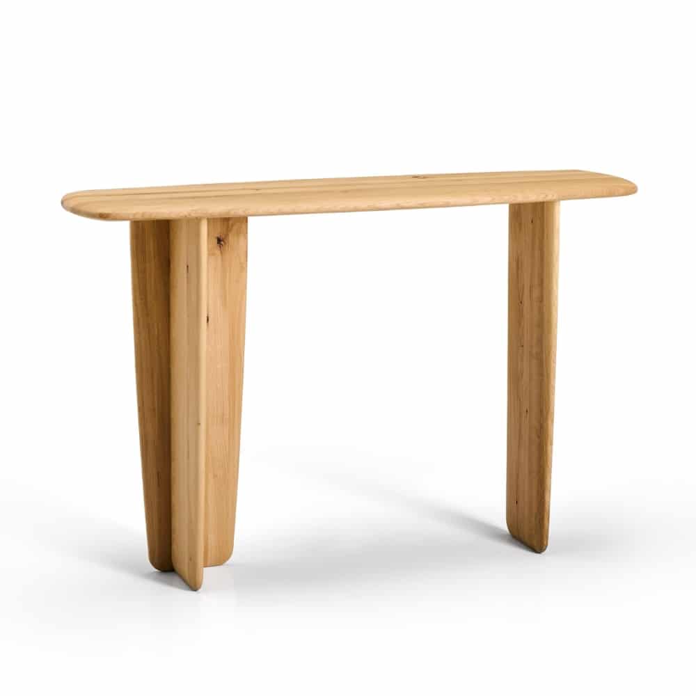 Avec la console BOHEME, le chêne massif révèle toute sa beauté naturelle. Son design équilibré joue sur les contrastes : la force du bois, la douceur des courbes, la rigueur d’une ligne parfaitement maîtrisée. Dans une entrée, un séjour ou un espace de travail, elle structure l’espace avec élégance sans jamais l’alourdir. On y dépose une lampe, quelques livres, un vase ou un souvenir de voyage, qui trouvent ici toute leur place.