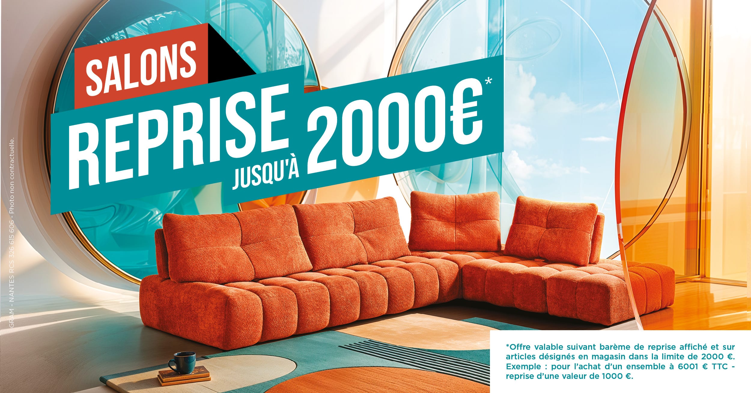 Accueil | Offre du moment OFFRE DU MOMENT Envie de donner un nouveau souffle à votre salon ? C’est le moment idéal : nous reprenons votre ancien canapé jusqu’à 2000€* pour l’achat du nouveau modèle de vos rêves. N'attendez pas, rendez-vous vite dans votre magasin Gallery Tendances ! TROUVER MON MAGASIN GALLERY TENDANCES *Offre valable suivant barème de reprise affiché et sur articles désignés en magasin dans la limite de 2000€. Exemple : pour l’achat d’un ensemble à 6001€ TTC – reprise d’une valeur de 1000€.