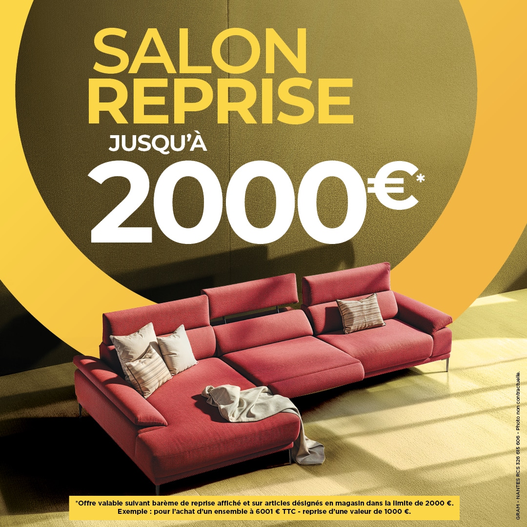 Accueil | Offre du moment OFFRE DU MOMENT Jusqu'au 25 avril 2026, votre magasin Gallery Tendances reprend votre ancien canapé jusqu'à 2000€* ! TROUVER MON MAGASIN GALLERY TENDANCES *Offre valable suivant barème de reprise affiché et sur articles désignés en magasin dans la limite de 2000€.